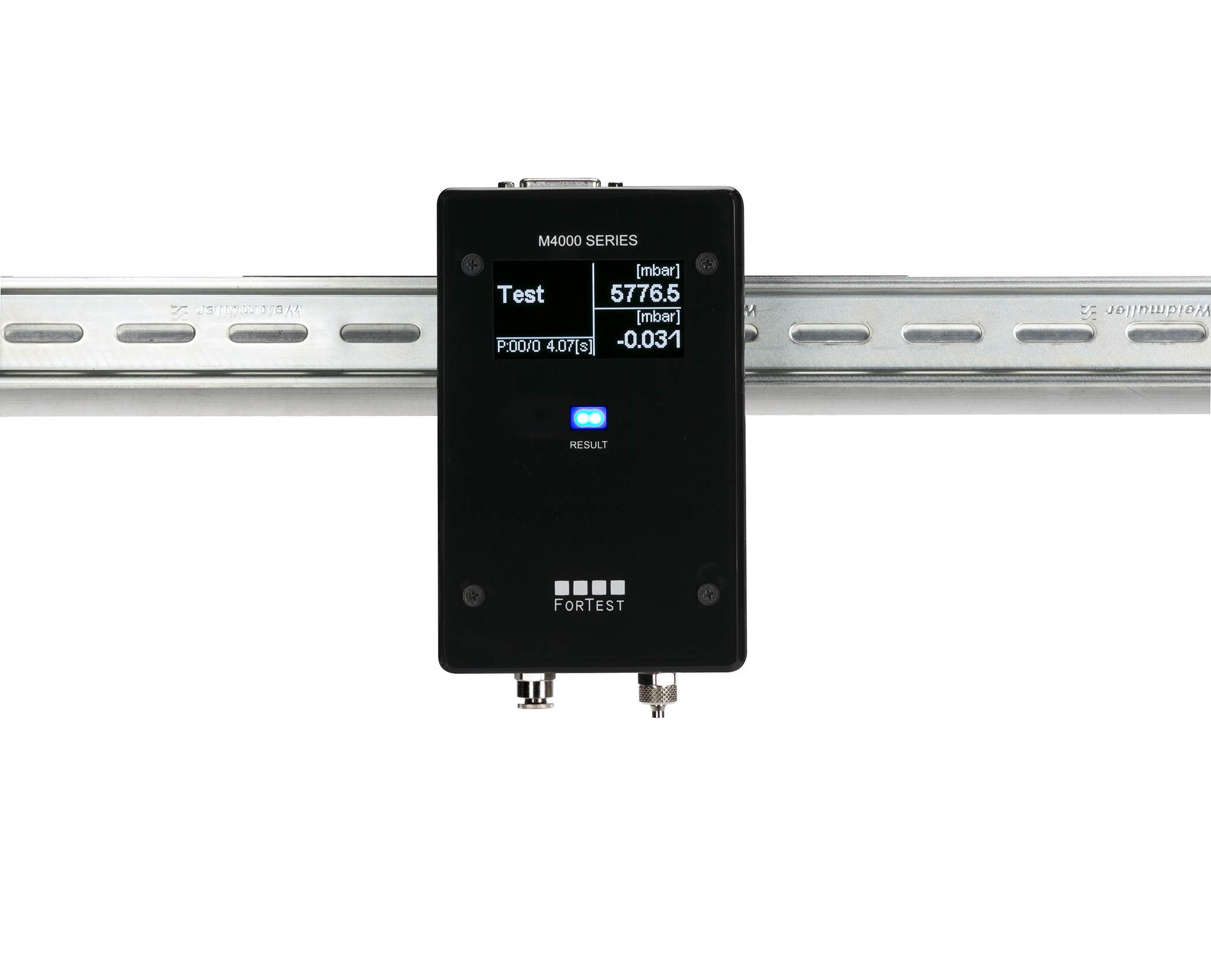 T4990是ForTest新型式与创新性的绝对压力衰减检漏器。它是为了整合在自动化、半自动及旋转式的工作台而生的,它提供了可与顶级系列设备相比的硬件,而且测量精度不低于0.1 Pa。T4990提供一个创新的2.5“ 高分辨率OLED显示屏、可直接连接PC的USB端口(包括管理软件)和几个做为外部自动化操作的扩充端口、指示灯、限动开关、编程键盘...等。黑色电镀铝合金外壳被设计为可固定到一个DIN导轨或到面板上,最后藉由气动接头直接装到测试站点上,以便缩小体积。由于优化的气动组件、超快速的内部阀门和小型测试连接器,测试时间已经缩短。依照快速装配和快速启动的条理,M4990已被设计来取代 “自助式” 的测试站点,它是由压力传感器、气动组件和PLC所组成,可以达到 “即插即用”,无需编程和安装的成本;组装几分钟后,你就可以完全地操作。 T4990可以透过ForTest、Canbus或Modbu不同的通讯协议来连结。它的工作压力可从-1到10 Bar。